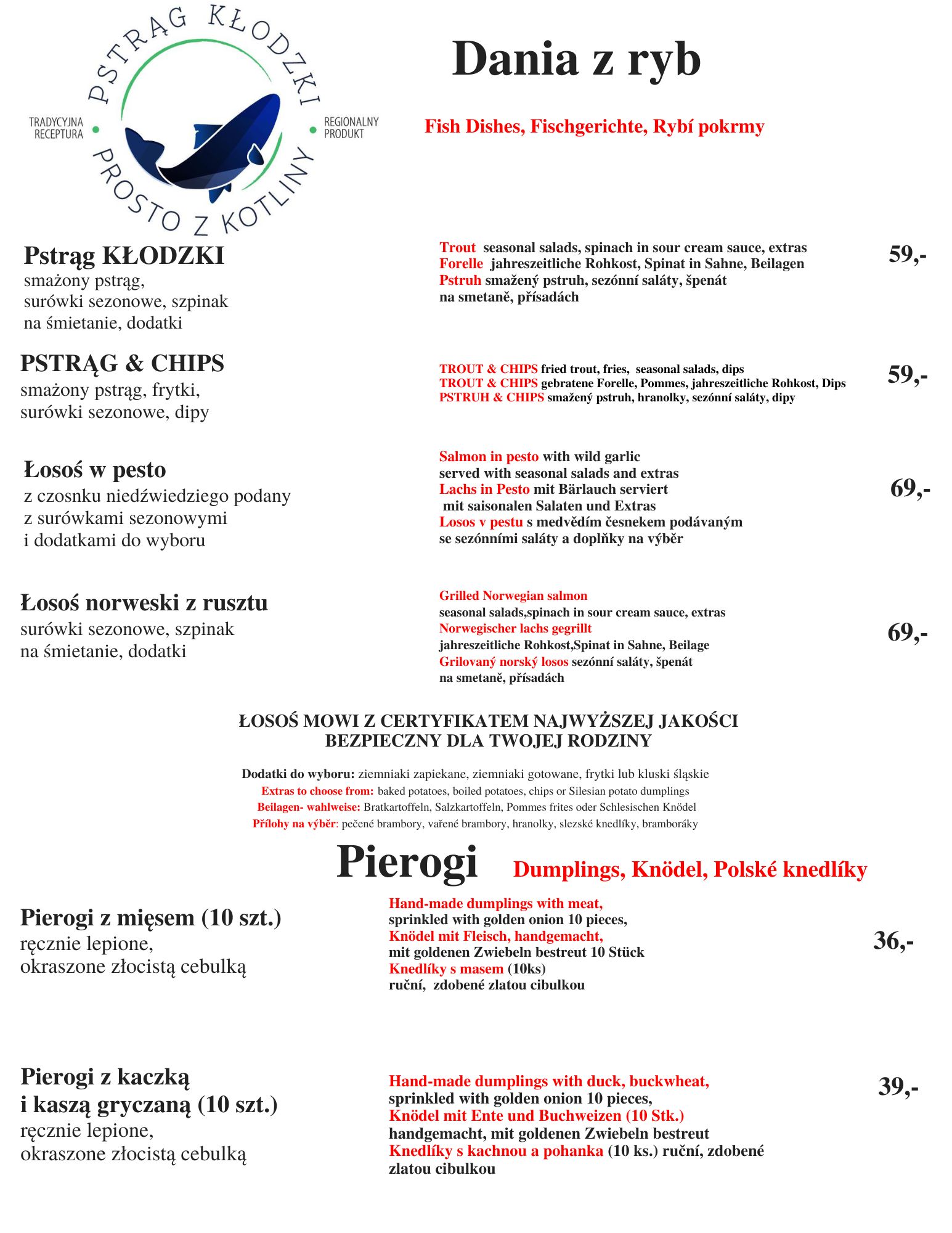 Our specialty is meat in many different versions. Beef, pork, poultry, fish – we serve it all in our restaurant.